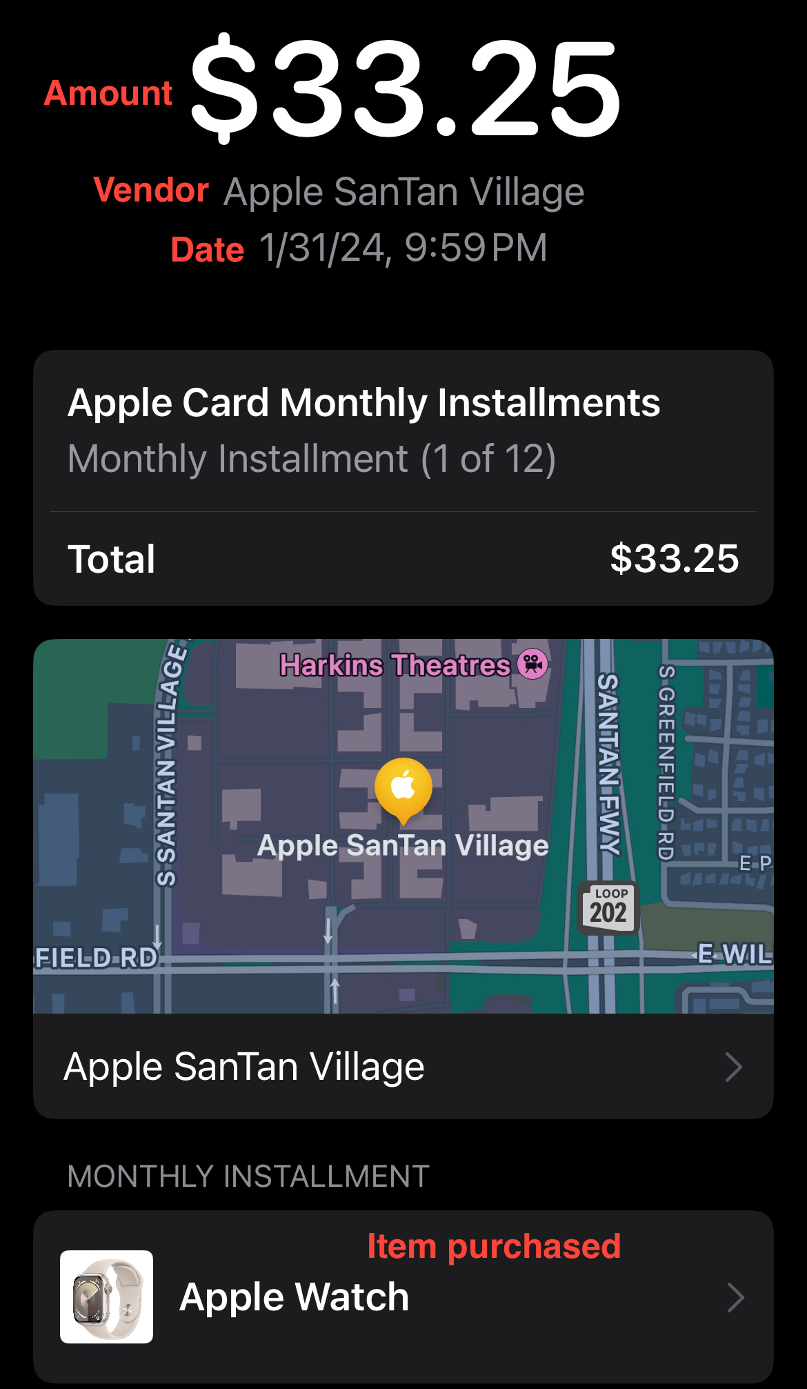 Example screenshot for an Apple Product Installment payment forwarded to Hubdoc: