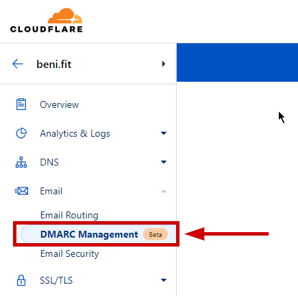 - Click on Email > DMARC Management on the left sidebar