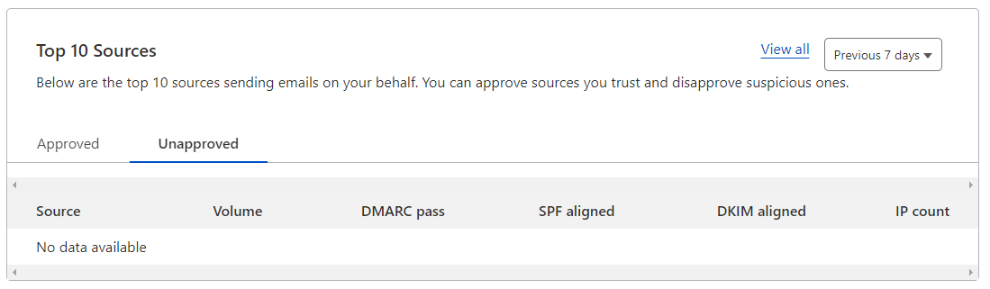 - Select the Approved or Unapproved tabs depending on whether you want to check for sources that are approved or unapproved to send emails from your domain.