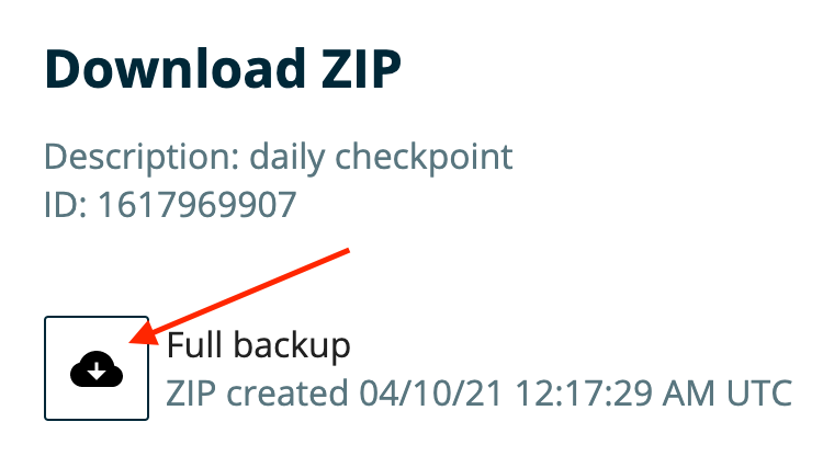 - Select the backup you want to download and click “Prepare Zip”
