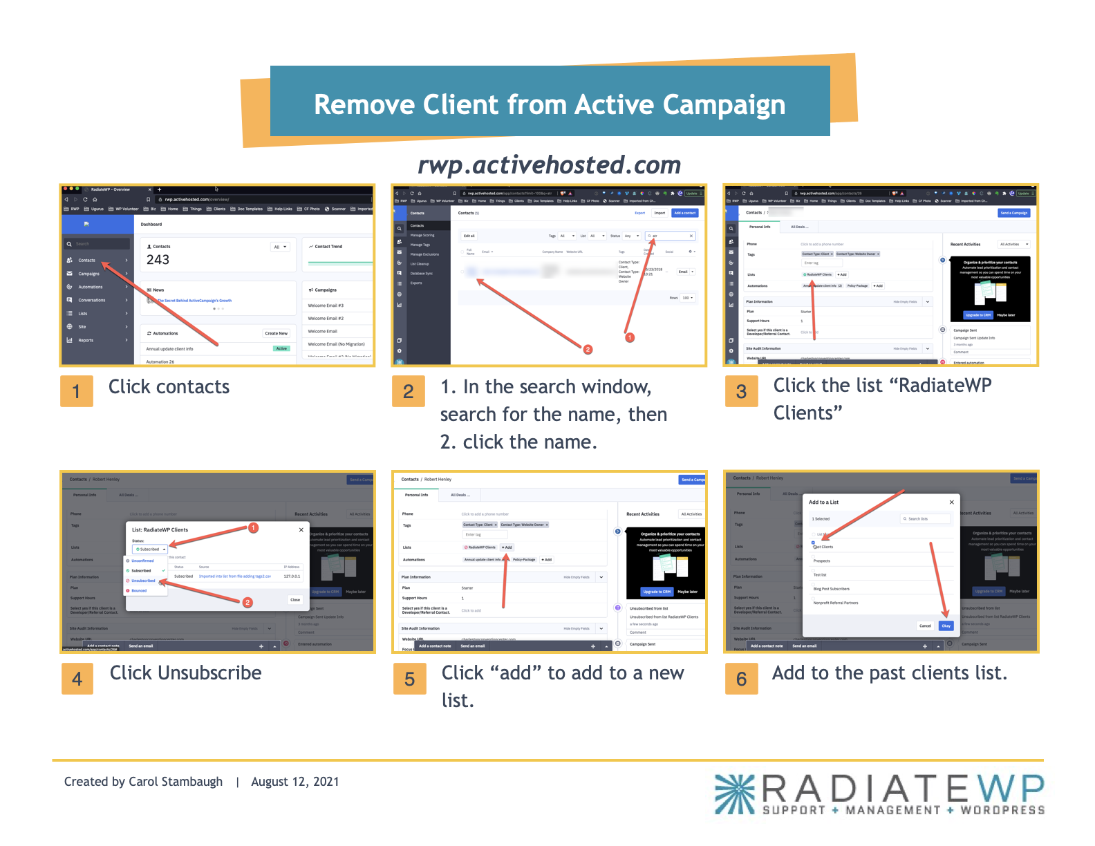 - Under Tags section > Lists, click list name “RadiateWP Clients“