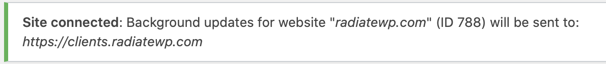 You should see a message that the site has connected to the Client Site with an ID number similar to this: