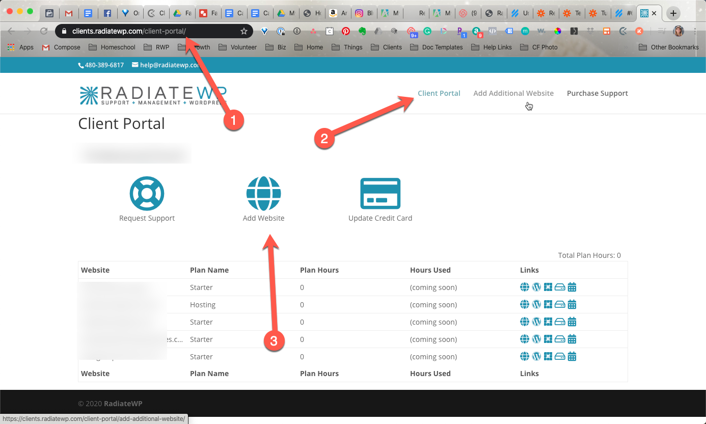 To add an additional website plan, simply go to clients.radiatewp.com and log into your client portal. If you do not remember your password, simply click “forgot password” and enter your email address and go through the reset password procedure.